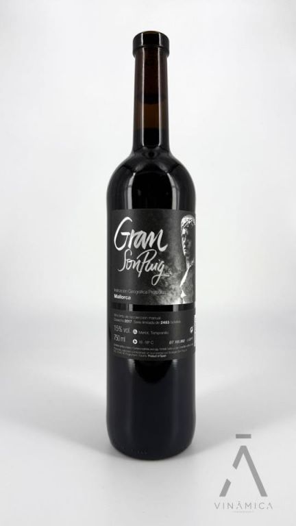 Gran Son Puig es el vino insignia de Bodegas Son Puig, una empresa familiar ubicada en la finca histórica de Son Puig en Puigpunyent, cultivando desde 1597. Elaborado con una selección de variedades autóctonas e internacionales (callet, Tempranillo, Cabernet Sauvignon y Merlot), es un tinto estructurado, con cuerpo y carácter mediterráneo. Tras una fermentación tradicional y crianza prolongada en barricas de roble —francés y americano— el vino continúa su envejecimiento en botella al menos dos años antes de salir al mercado, lo que le aporta redondez, complejidad y suavidad. De intensidad aromática elevada, presenta notas de frutos negros maduros, especias, hierbas secas y recuerdo de tostados. En boca se percibe denso, con taninos pulidos, acidez equilibrada y un final largo y armonioso. Ideal para acompañar carnes rojas, platos de caza o quesos curados