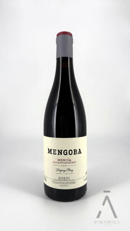 Mengoba Mencía Alicante-Bouschet es un blend en el que Gregory Pérez busca la frescura aromática y elegancia de la Mencía de viñas viejas plantadas a 700 m de altitud y la intensidad y profundidad cromática de la Alicante Bouschet de viñas de 50 años. Tras una vendimia manual, las uvas se fermentan en fudres de gran capacidad con levaduras autóctonas y la crianza en madera se mantiene durante 6 meses, concluyendo en acero inoxidable otros 6 meses para redondear el perfil. El resultado es un tinto equilibrado, directo y con identidad de terruño, que combina fruta fresca, notas especiadas y un carácter mineral muy presente, accesible pero cargado de personalidad