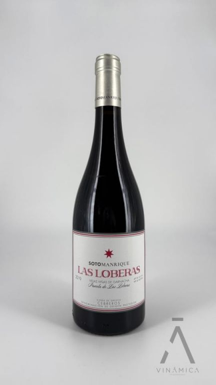 Las Loberas es un vino de viña singular de Soto y Manrique, elaborado con uvas Garnacha de una parcela plantada en 1930 a 780?m sobre suelo de arena granítica rosa degradada. La vinificación se realiza con fermentación espontánea (˜?30 días, con ˜?30?% racimos enteros) en tinines de 1?000?kg, seguida de crianza durante 14 meses en fudres de gran tamaño (800?L a 10?000?L según añada), donde también realiza la fermentación maloláctica.Presenta un color cereza brillante con capa media-alta. En nariz despliega intensidad y frescura con notas de fruta roja madura, especias como pimienta y nuez moscada, hierbas secas y una mineralidad delicada. En boca es amplio y equilibrado, con taninos finos, acidez vibrante y un final largo y especiado que combina elegancia y frescura mediterránea.La añada 2021 recibió 94 puntos Robert Parker y la 2019 obtuvo también 94–95 Parker, reflejando su calidad constante. Producción limitada