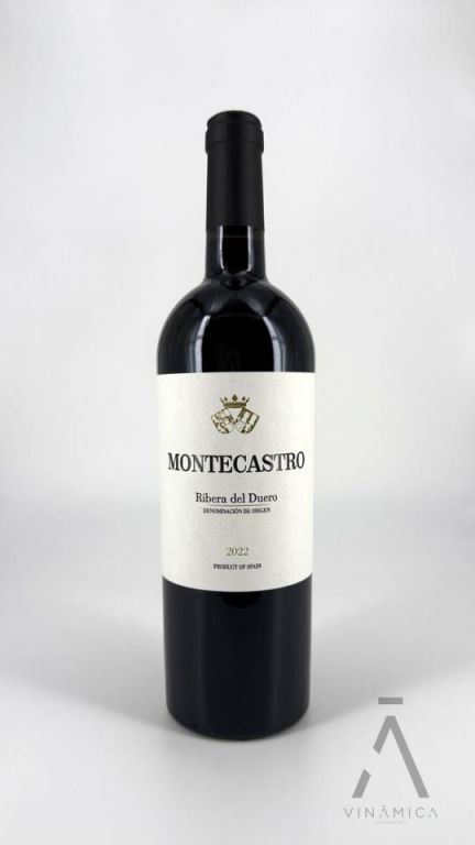 Montecastro es un tinto de finca que destaca por su equilibrio entre frescura y estructura, fruto de su vinificación en viñedos elevados (860–930 m) de suelos calizo-arenosos. Fermentado con levaduras autóctonas y criado en barricas de diferentes orígenes, ofrece una intensa nariz de frutas maduras (ciruelas, moras), matices herbáceos y especiados, junto a notas cremosas y minerales de la madera. En boca se muestra potente, elegante y bien equilibrado, con taninos suaves, acidez refrescante y un final largo y persistente. Un tinto moderno con identidad Ribera, ideal para carnes rojas, guisos y quesos curados.