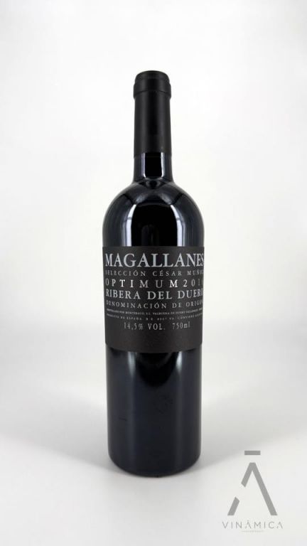 Magallanes Optimum es la cúspide de la colección de vinos creada por César Muñoz en Ribera del Duero. Procede de viñedos muy viejos de Tinta Fina plantados en La Horra, con rendimientos extremadamente bajos que aportan máxima concentración y complejidad. La vendimia se realiza manualmente, con una minuciosa selección en viña y en bodega. La fermentación se lleva a cabo en tinos de madera, seguida de una crianza de 30 meses en barricas de roble francés 100% nuevas, donde desarrolla su carácter elegante y poderoso. Presenta aromas profundos de fruta negra madura, violetas, cacao, regaliz, especias y un marcado fondo mineral. En boca es estructurado, sedoso y de gran equilibrio, con taninos finos y un final muy largo, diseñado para evolucionar durante décadas.