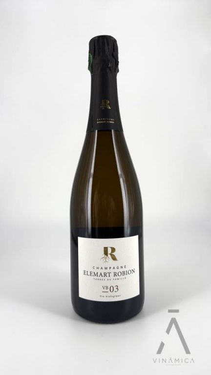 “VB03” es una cuvée biodinámica elaborada por Champagne?Elemart?Robion en sus fincas de Lhéry y Courtagnon. Su nombre alude al estilo del vino: “V” para vendimia manual, “B” para biodinámica y “03” alude al ensamblaje del tercer millar de botellas producidas. Se elabora sin aditivos, con fermentación natural en fudres de roble de gran volumen y tanques de acero, respetando la expresión de la viña.Tras la primera fermentación, el vino madura al menos tres años sobre lías en botella, sin adicionarse licor de expedición, resultando en un Extra?Brut seco, vibrante y mineral. Presenta aromas de frutos blancos, brioche delicado y un sutil fondo cremoso; en boca, sorprende por su estructura limpia, acidez chispeante, mousse fina y un final persistente. Perfecto para maridar con pescados sabrosos, ostras, crustáceos o sofisticados aperitivos.