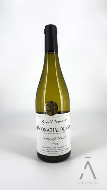 Este es el vino insignia de Domaine Talmard, elaborado por Gérald Talmard en la zona de Mâconnais, principalmente en los viñedos de Chardonnay y Uchizy, considerados la cuna del Chardonnay historia familiar desde el siglo XVII. La estrategia incluye vendimia temprana para conservar acidez viva y fermentación con levaduras autóctonas exclusivamente en acero inoxidableEn copa presenta un color amarillo dorado con reflejos verdosos. En nariz destacan notas de flores blancas (acacia, azahar), cítricos frescos como limón y pomelo, manzana amarilla y un delicado fondo mineral. En boca es ligero, con acidez chispeante, textura fluida y un final largo, tenso y fresco que invita a otro sorbo