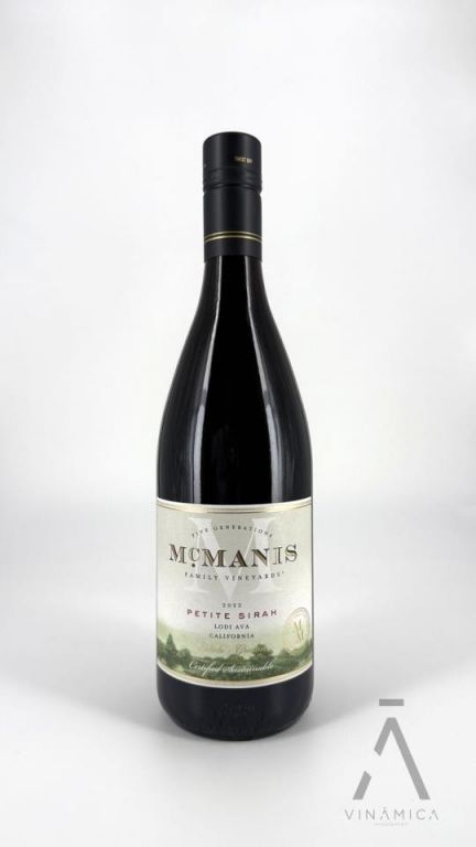 Este Petit Sirah de McManis Family Vineyards se cultiva en viñedos sostenibles de Lodi y destaca por su color intenso y profundo. Se caracteriza por notas potentes de chocolate, caramelo, toffee y fruta negra concentrada, con matices intermedios de mocha y un final largo y lujoso. El vino proviene de una vendimia entre el 3 y el 12 de octubre, con una madurez promedio de 25.2?°Brix. Tras una fermentación de 6 a 9 días sobre hollejos, el mosto completó la fermentación en acero inoxidable y fue envejecido en madera durante 7 meses